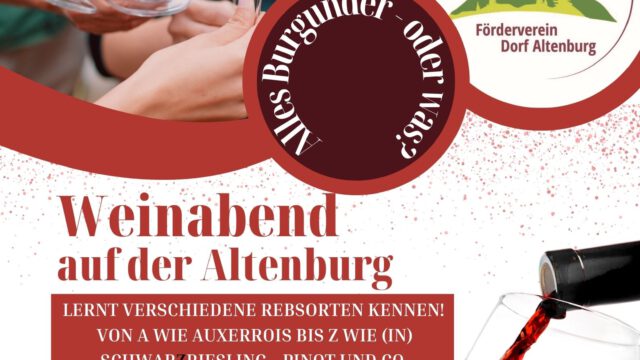 Unser Weinabend mit Elke und Ralf Bender findet am Samstag, 11. April, um 19:30 in der Grillhütte statt. Der Kostenbeitrag beträgt ca. 20 Euro, anmelden könnt ihr auch bei Werner Weber (weber.werner.altenburg@t-online.de) bis zum 28. März. … mehr lesen