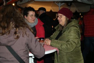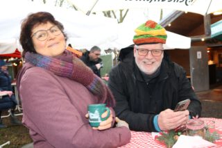 Das Wetter hätte gemütlicher sein können auf dem diesjährigen Weihnachtsmarkt auf der Altenburg, doch von ein dem anhaltenden Nieselregen ließen sich die Gäste auf dem Schlossberg nicht schrecken. Sie verweilten unter den großen Schirmen und genossen die Angebote, die die Altenburger Vereine für sie bereithielten: Viele verschiedene heiße Getränke von Hot Aperol bis Glüh-Gin waren dabei, Bratwurst und Salzekuchen, Waffeln und hausgemachte Kuchen.