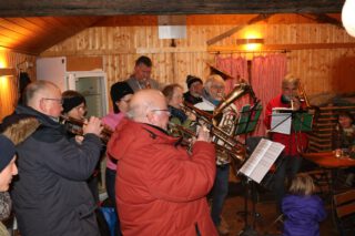 Nach den kleinen Reden spielte der Evangelische Posaunenchor schöne Weihnachtslieder über den Platz – zur Freude aller Anwesenden, die die Verkaufsbuden und die anderen Angebote in Augenschein nahmen. Die Grillhütte war zum Café umfunktioniert, in dem ein Holzofen für Wärme sorgte und Stühle und Tische zum Verweilen einluden.