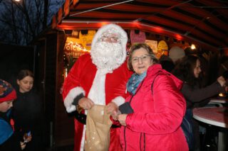 Nach Einbruch der Dunkelheit hatte auch der Nikolaus seinen Weg auf den Schlossberg gefunden und ließ die Kinder köstliche Weihnachtsgaben aus dem Sack holen. Traditionell findet auf dem Altenburger Weihnachtsmarkt auch eine Andacht statt, für die der Förderverein in diesem Jahr wieder den Pfarrer im Ruhestand Dr. Jürgen Sauer gewinnen konnte. Er wiederum hatte sich gewünscht, dass der Posaunenchor die Andacht in der Grillhütte begleiten möge, und so erwartete die Gäste hier eine ganz runde Angelegenheit mit schöner Musik. „Früher war mehr Lametta“ – dieses berühmte Zitat legte der Pfarrer seinen Gedanken zugrunde. Mit den Lichtern und dem Glanz zu Weihnachten feiern Menschen den Glanz und die Herrlichkeit Gottes, lautete der Tenor dieser Andacht.